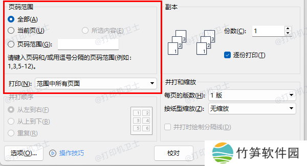如果 Word 页码显示正确,但打印页码依然错乱,可以检查 打印设置。