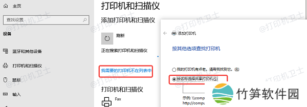 5. 如果没有显示共享打印机,可以选择“我需要的打印机不在列表中”。