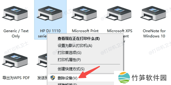 右键点击该打印机,选择“删除设备”,然后重新连接打印机,让系统自动识别。