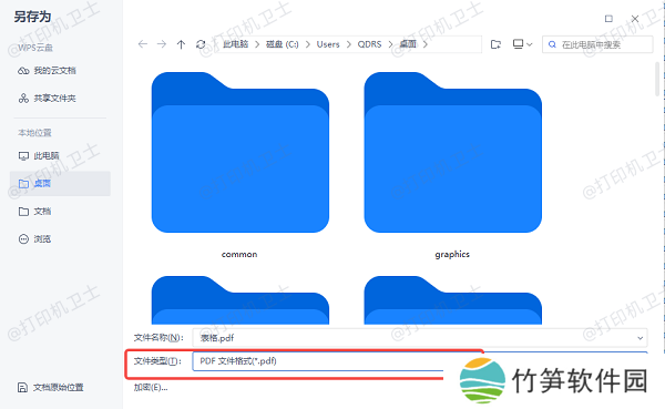 在“保存类型”下拉菜单中选择“PDF”格式。