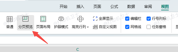 点击“视图”选项卡,选择“分页预览”,Excel会以蓝色虚线显示自动分页符。
