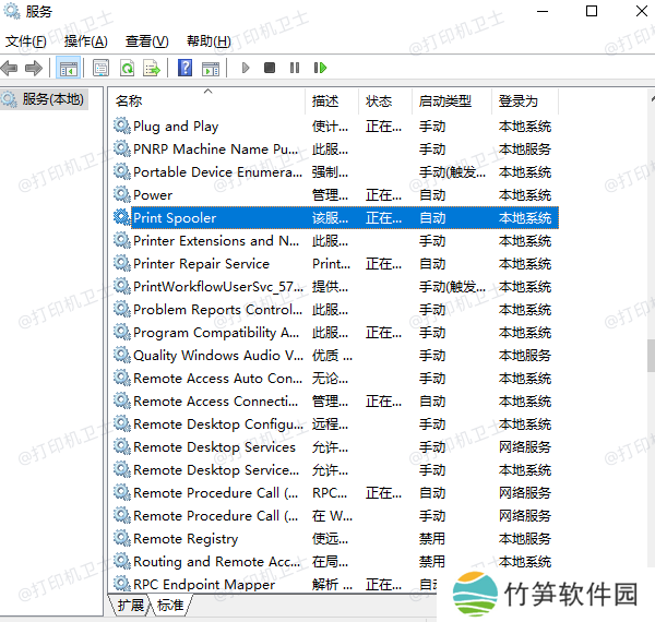 如果该服务的状态是“正在运行”,说明打印机服务已经开启,问题可能出在其他地方。如果状态是“已停止”或“停止”,说明打印机服务没有启动。
