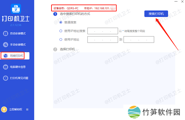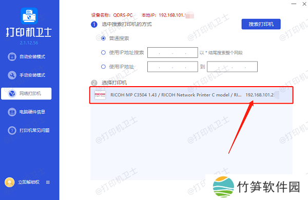 通过打印机驱动管理软件“本站”无需繁琐的步骤,只需要点击网络打印机,软件便可以扫描出打印机ip地址,具体的步骤如下: