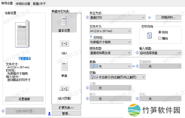 3、检查设置中的纸张类型和纸张大小是否与实际使用的纸张匹配。如果不匹配,修改为正确的选项。