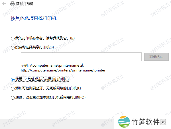 对于一些高级设置需求,或者如果你的打印机在无线网络中未能自动显示,可以手动通过IP地址进行连接。