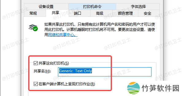 2. 设置共享:在打印机属性窗口中,点击“共享”标签,勾选“共享这台打印机”选项,并为打印机设置共享名称。