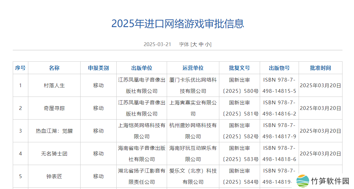 3月21日国家新闻出版署发布了新一批的国产+进口游戏过审版号!本次共计134款游戏过审。过审的游戏中,备受期待以及热度高的游戏包括雪中悍刀行、山海奇旅、剑侠世界4:无限、村落人生(原名希望之村2)、绝地鸭卫、少年三国志3等,具体的版号信息见下方大图。