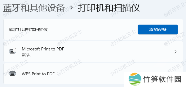 点击“添加设备”,系统会自动搜索可用的打印机。