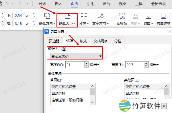 不同的软件(如Word、Excel、PDF阅读器)可能需要单独设置纸张尺寸。例如:①、在Word中:进入“页面布局”→“纸张大小”→ 自定义大小
