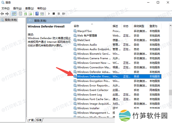 1、在服务列表中,找到 Windows Defender Firewall。