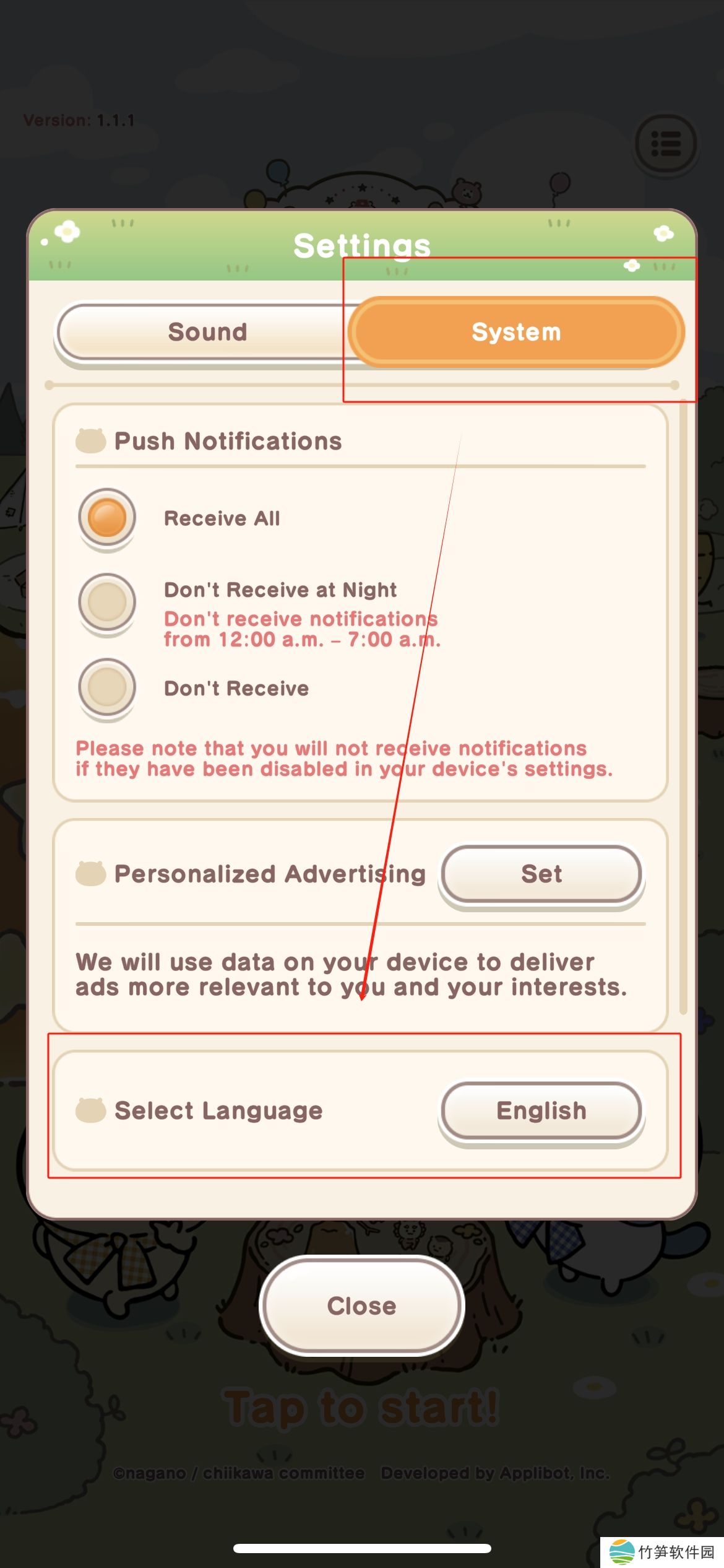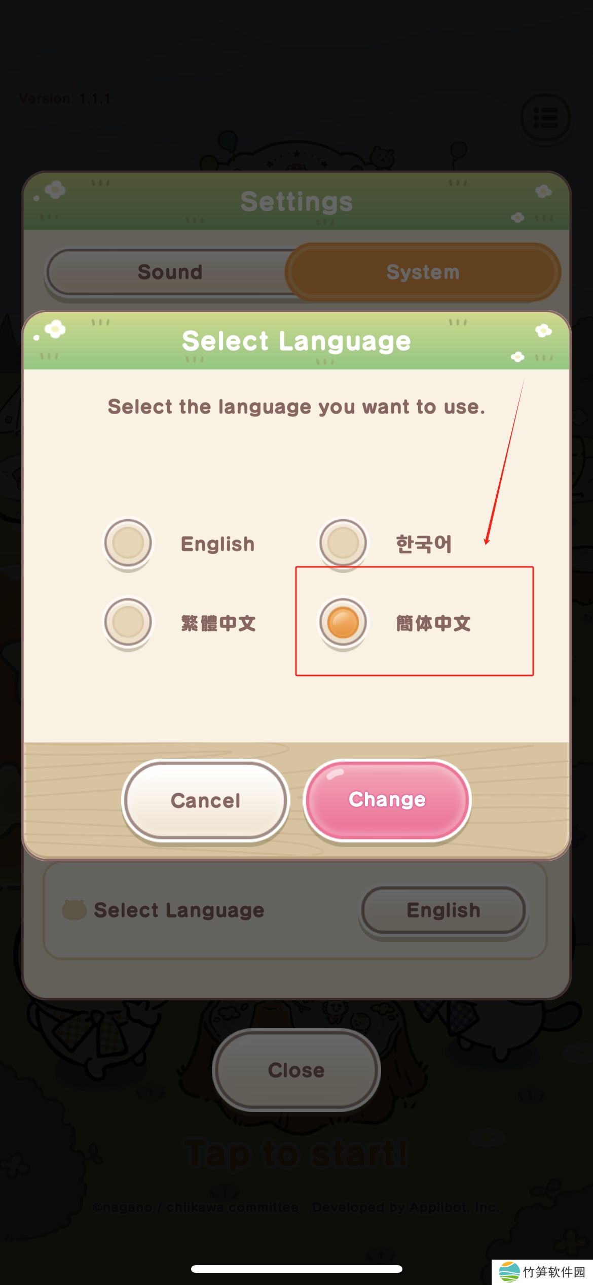 上面说完了ios下载口袋吉伊卡哇的过程,接下来简单说明一下怎么设置游戏语言,打开游戏后可以看到默认语言为英语,在进入游戏前可以手动设置,步骤如下: