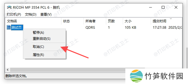 3、在打印任务列表中,右键点击需要取消的任务,选择 “取消”。