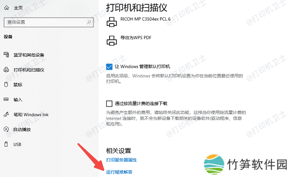 3. 尝试运行打印机诊断工具,Windows 用户可以在“设置”→“设备”→“打印机和扫描仪”中找到“运行疑难解答”选项。