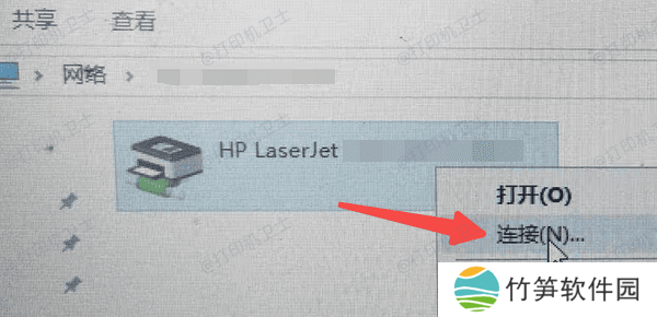 在打开的窗口中,找到共享的打印机,右键点击 “连接”。