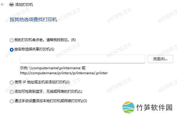 如果在“网络”中找不到共享打印机,可以尝试使用IP地址手动连接。