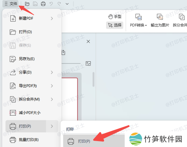 2、在PDF阅读器的菜单栏中,找到“文件”>“打印”,或直接按下 Ctrl + P(Windows)或 Command + P(Mac)。