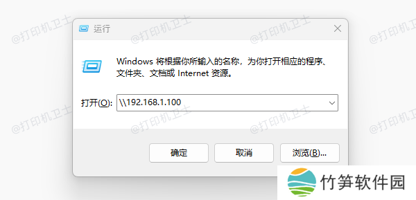 按 Win + R,输入\共享打印机所在电脑的IP地址(如\192.168.1.100),回车。