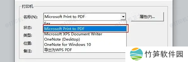 2、在打印机列表中选择 Microsoft Print to PDF 或 Adobe PDF。