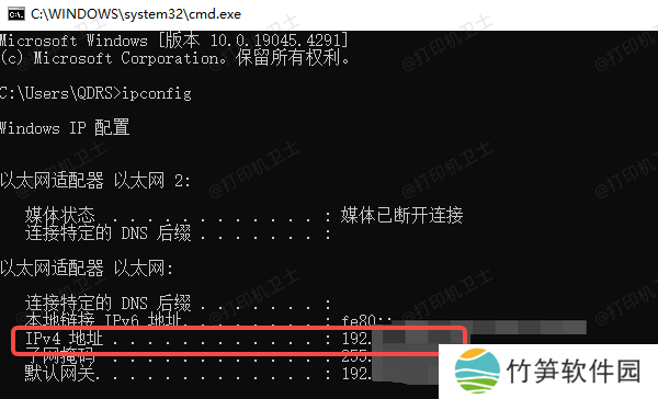 输入 ipconfig 并回车,找到 IPv4 地址(例如 192.168.1.100)。