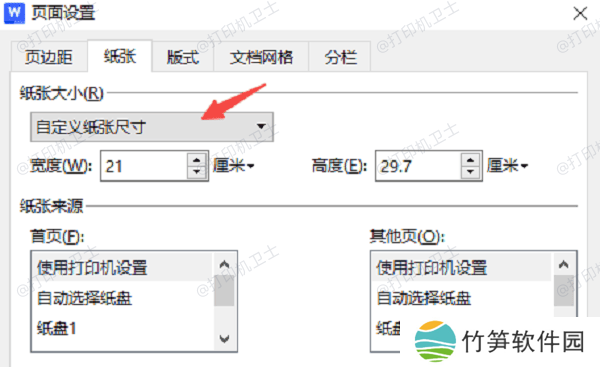 如果需要自定义尺寸,点击“自定义纸张尺寸”,手动输入宽度和高度。