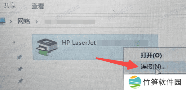 在弹出的窗口中,找到共享的打印机,右键选择“连接”。