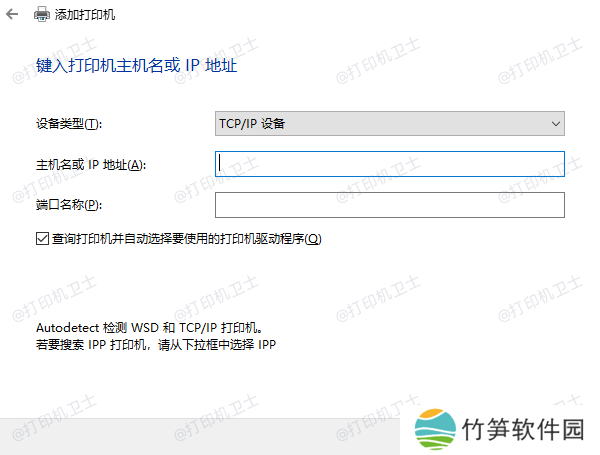 通过TCP/IP地址添加打印机