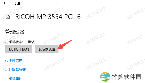 找到你的打印机,点击“管理”,然后选择 “设为默认值”。