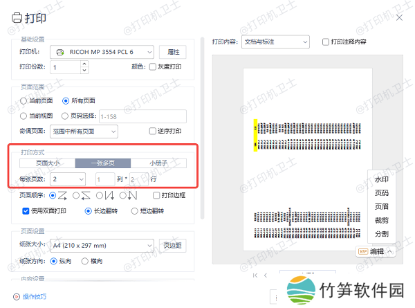 2、选择“一张多页”,然后设置每张页数为“2”,确保两张图片可以合并到一张纸上。