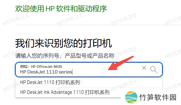 找到“驱动下载”等相关的选项,进入后在搜索栏输入打印机型号,如“HP DeskJet 1110 series”。