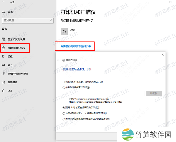 3. 如果系统无法找到打印机,尝试手动添加: