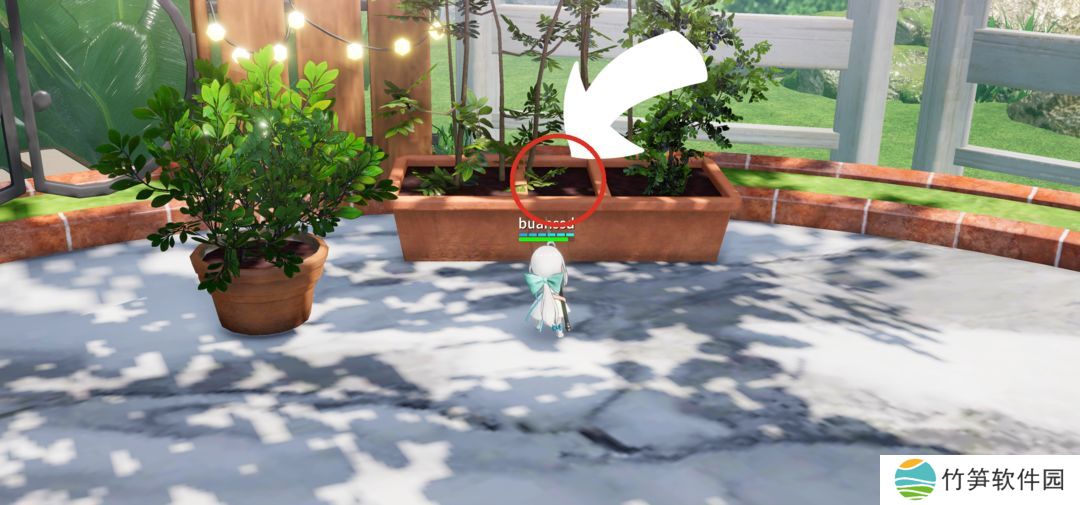 进入地图后,激活区域装置,走出白色栅栏门后向右走。走到到一个大花架底下后,先跳上第一层,再跳上第一层的小架子上,再从小架子跳上牌子下挂着的灯上,再从灯跳到花架的顶层就能看到了