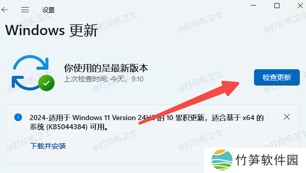 进入“设置”>“Windows 更新”> 检查更新,安装最新补丁。