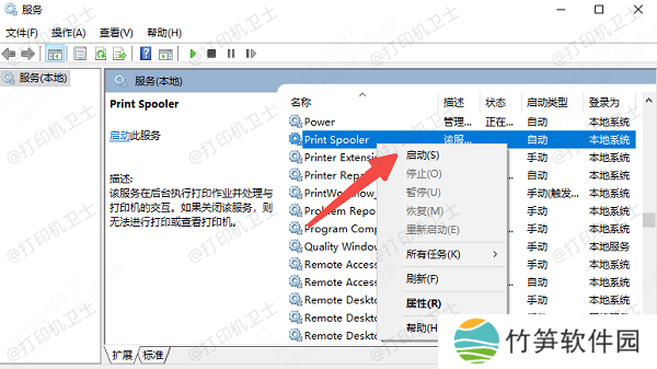 三、检查打印服务是否正常1、启用“Print Spooler”服务:按“Win + R”输入 services.msc 并按回车键,找到“Print Spooler”,确保其状态为“正在运行”,并设为“自动启动”。