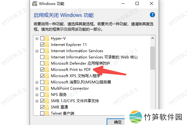 在弹出的窗口中,找到“Microsoft Print to PDF”并勾选。