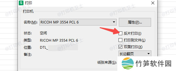 查找是否有“反片打印”、“反转颜色”、“色彩反转”等选项。
