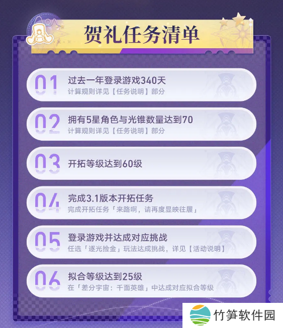 4月9日至4月26日期间,开拓者完成任意5个贺礼任务即可直接领取《崩坏:星穹铁道》纪念册*1!