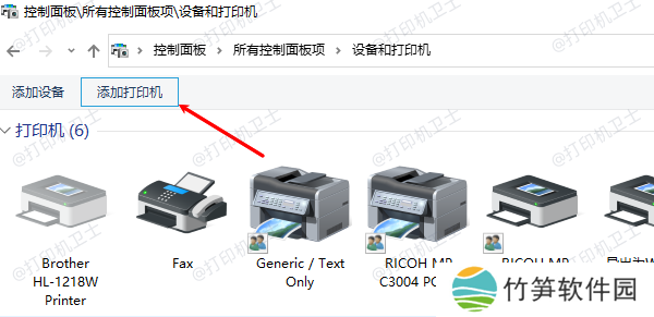 1、打开“控制面板”>“设备和打印机”;2、点击“添加打印机”;