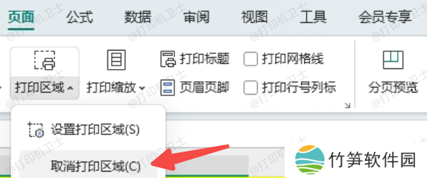 4、在“页面布局”选项卡中找到并点击“取消打印区域”。
