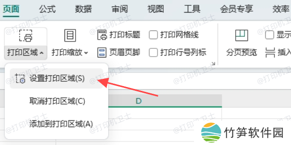 2、点击“页面布局”>“打印区域”>“设置打印区域”。
