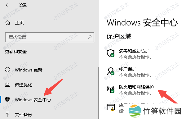 1、打开“设置”>“更新与安全”>“Windows 安全中心”,进入“防火墙和网络保护”。