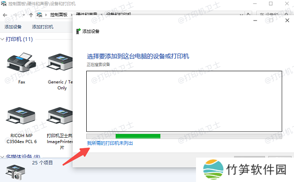 3、完成后重新打开“添加打印机”界面,再次尝试搜索网络打印机。
