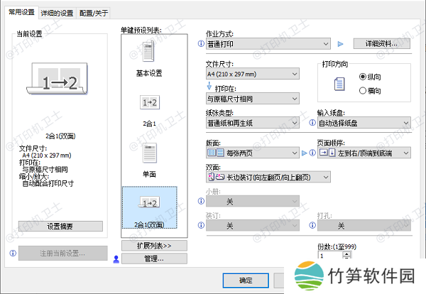 使用打印设置实现正反面打印