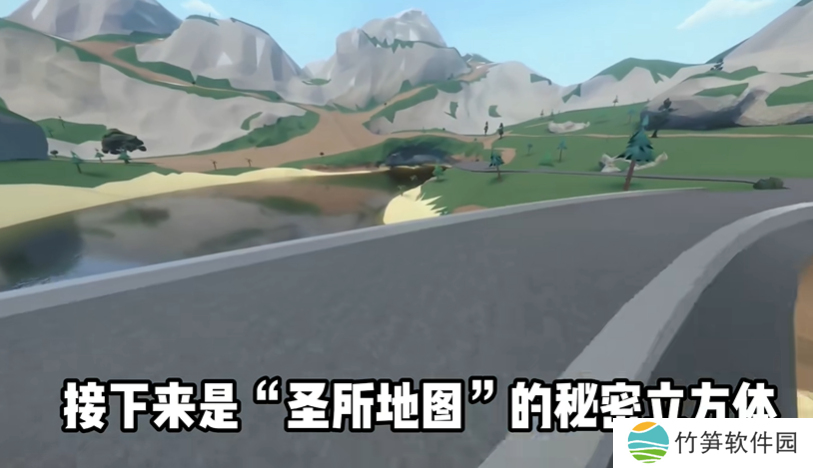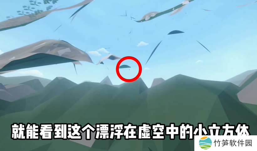 2、穿过山脉后即可看到漂浮在空中的立方体