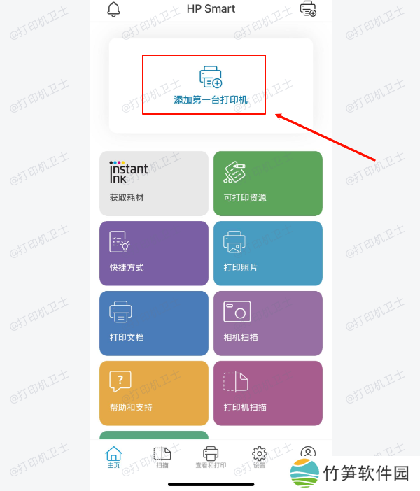 无论是安卓还是iOS系统,都必须通过HP Smart应用来管理和连接打印机。步骤如下: