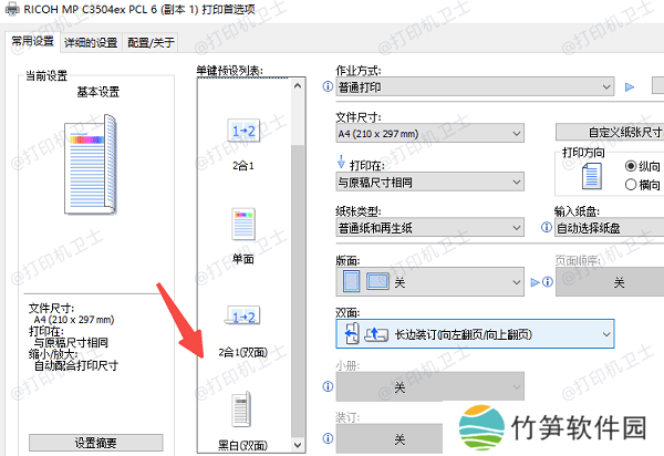 4. 设置默认双面打印:点击“首选项”进入详细设置页面,在“布局”或“打印快捷方式”中,启用“双面打印”,并保存为默认打印模式。