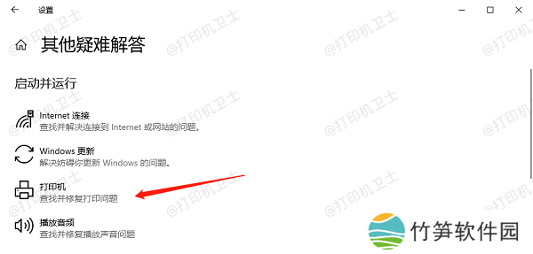 3、找到“打印机”,点击“运行疑难解答”。