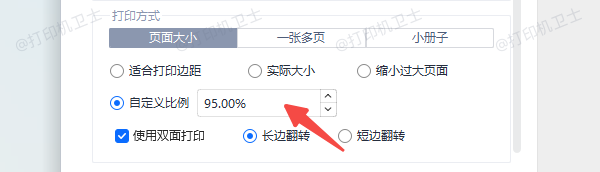 3、选择“缩放以适合可打印区域”或手动设置缩放比例(例如95%)。