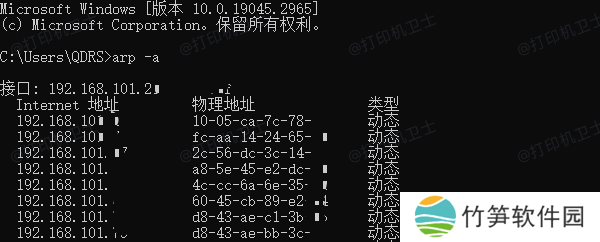 4、可以根据打印机品牌在MAC地址中辨别设备(例如HP设备MAC地址开头可能是3C-D9-2B)。