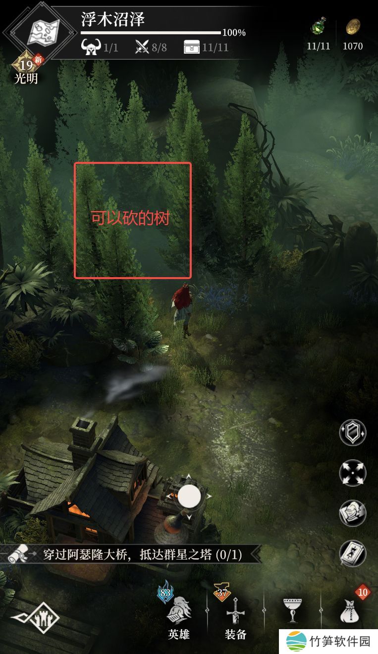 驱散在松鼠炼金术士的小屋上方的毒物,将这里的树砍掉,就可以找到白茗草啦。PS:后续的地图也会有一些不易察觉的、可以砍掉的树,堡主们要仔细探索哦~