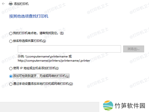 5. 接下来手动选择或安装驱动程序。如果系统未能识别打印机驱动,可能提示“无法连接”或出现709错误。
